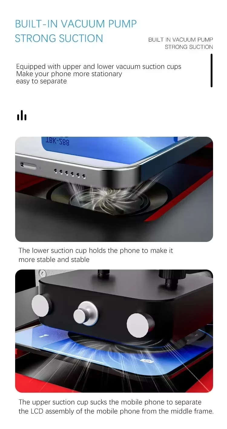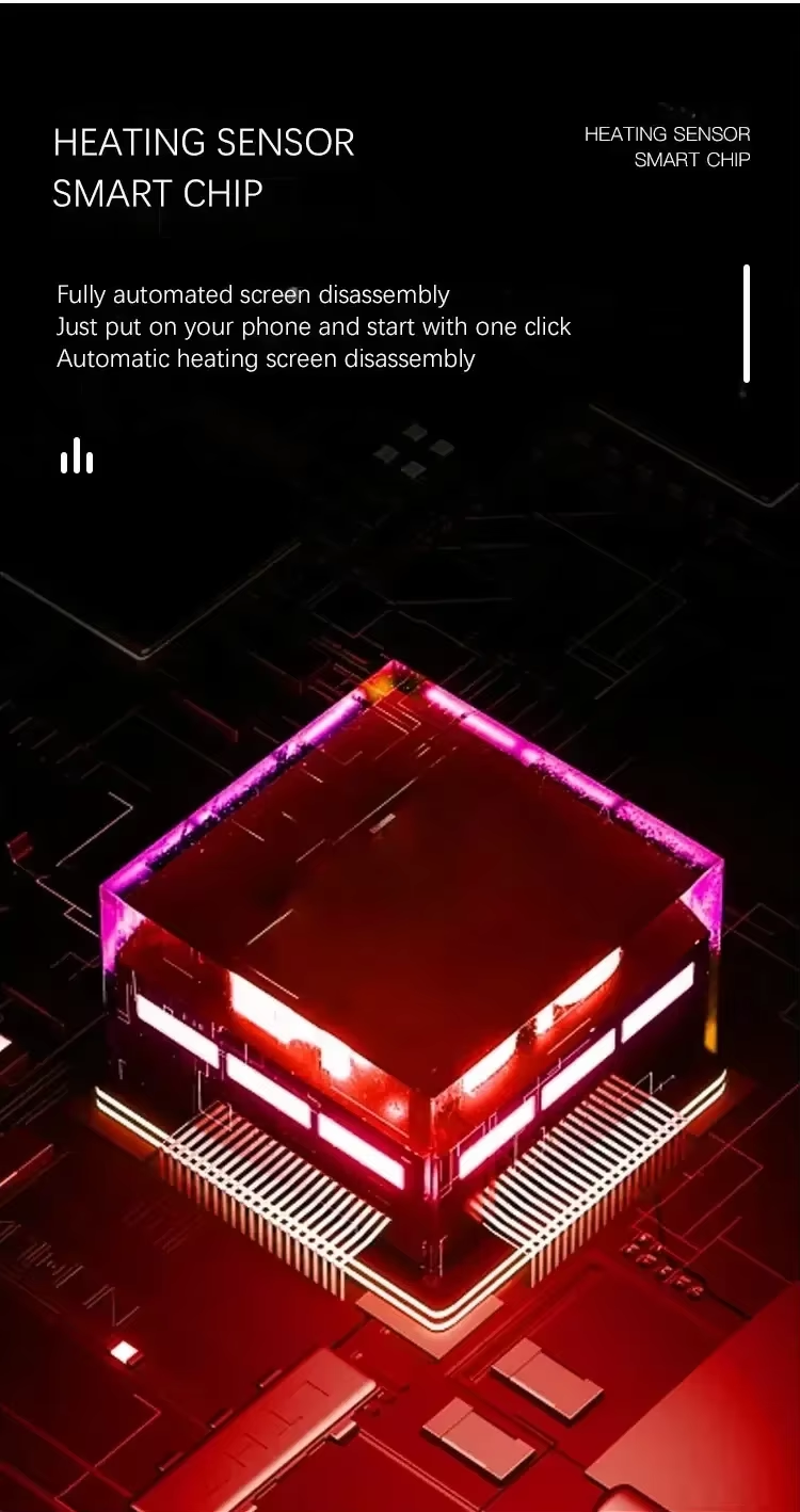 - Fully automated screen disassembly just put on your phone and start with one click automatic heating screen disassembly.
