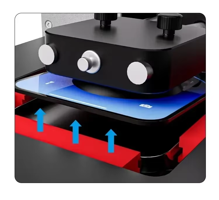 - Rotate the lifting knob to properly align the suction cup with the phone's surface. Set the heating temperature for both sides and the center of the device, as well as the heating duration.