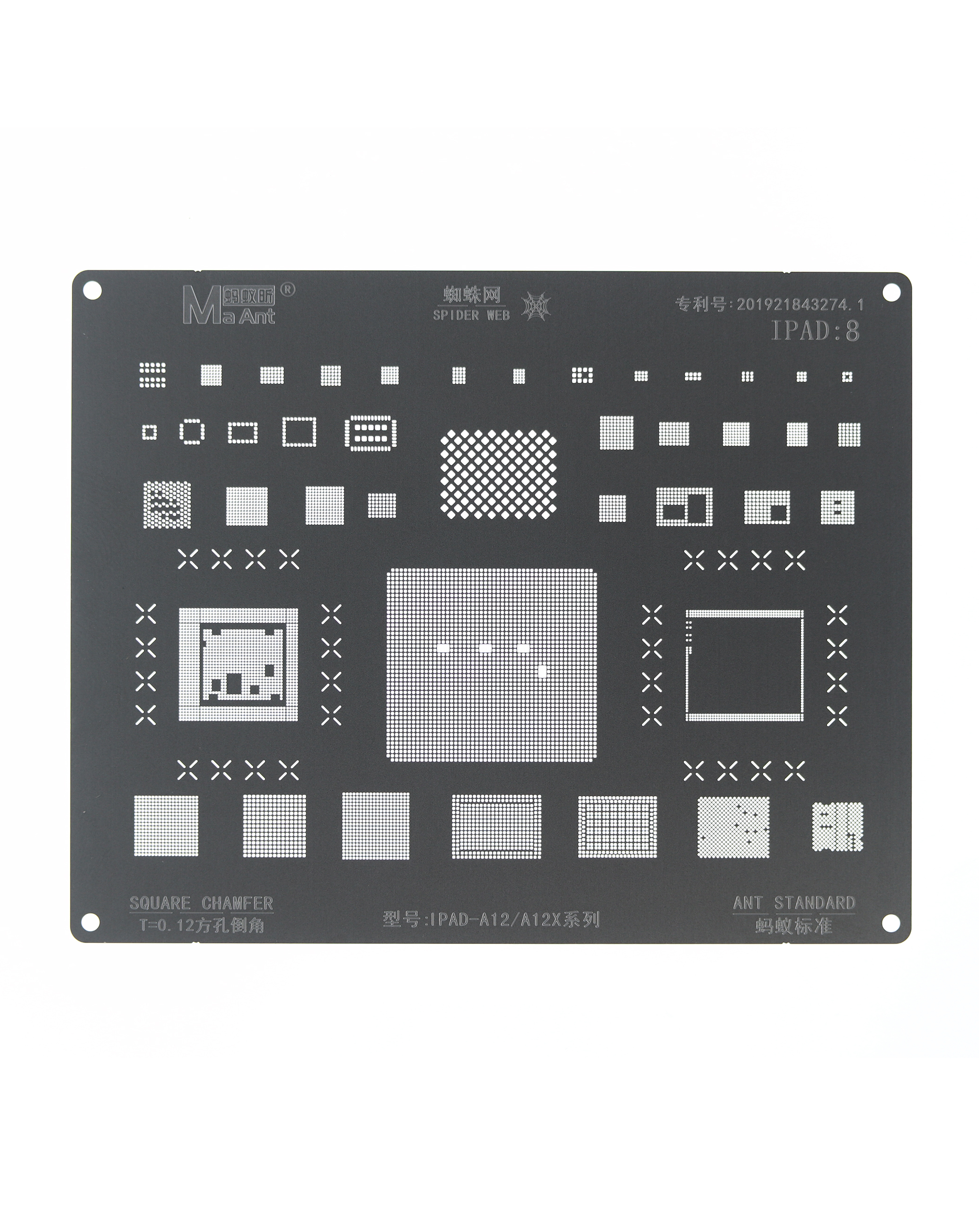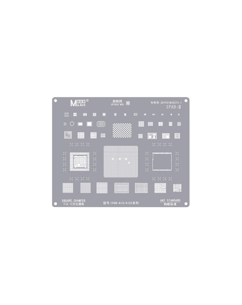 MaAnt 0.12mm Square Chamfer BGA Reballing Stencil for iPad Pro 11 1st / 12.9 3rd / Mini 5 / Air 3 / iPad 8 (A12 / A12X)