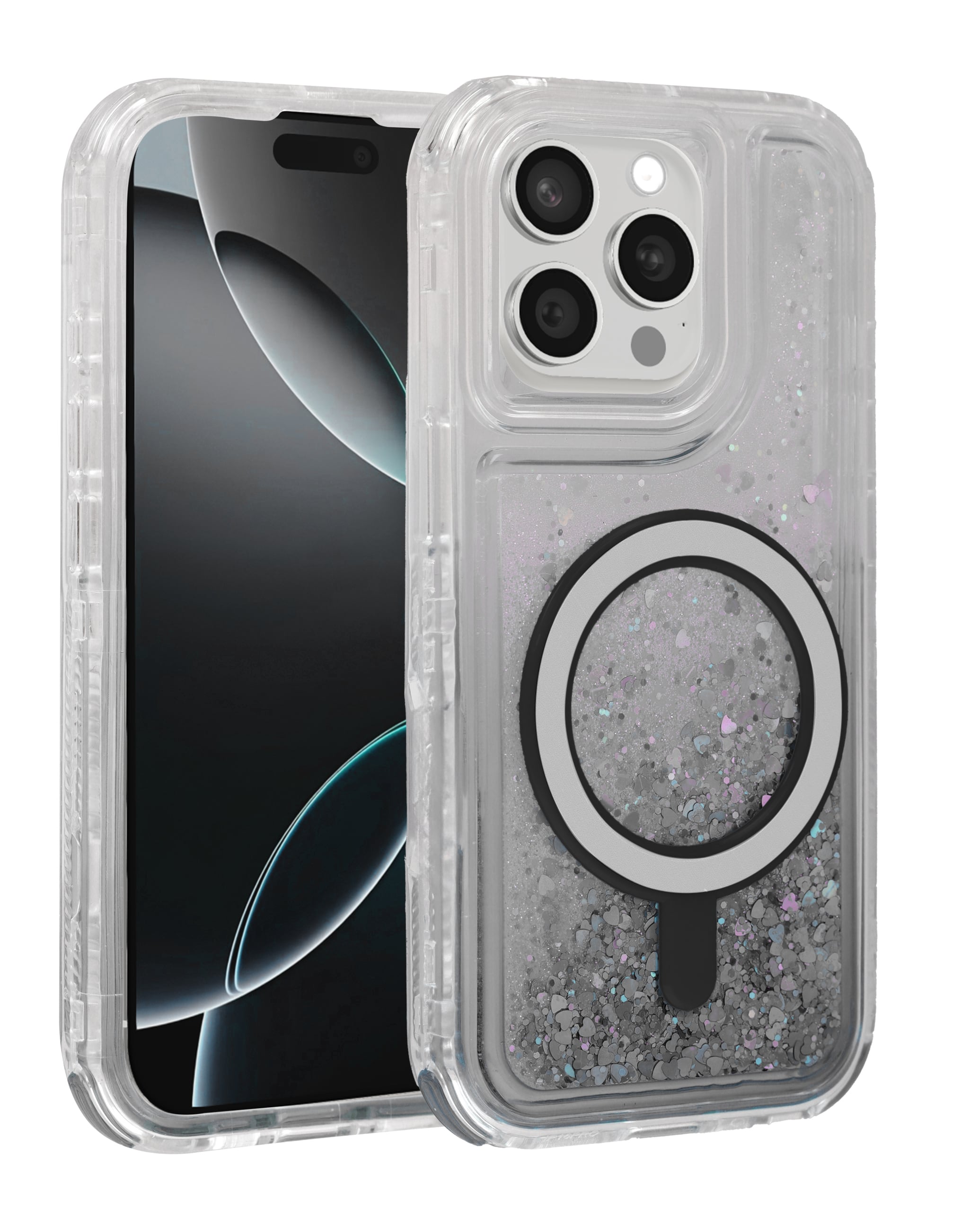 Wireless Charging Protective Glitter Liquid Bumper Case - BLACK for iPhone 13 Pro Max (Only Ground Shipping)